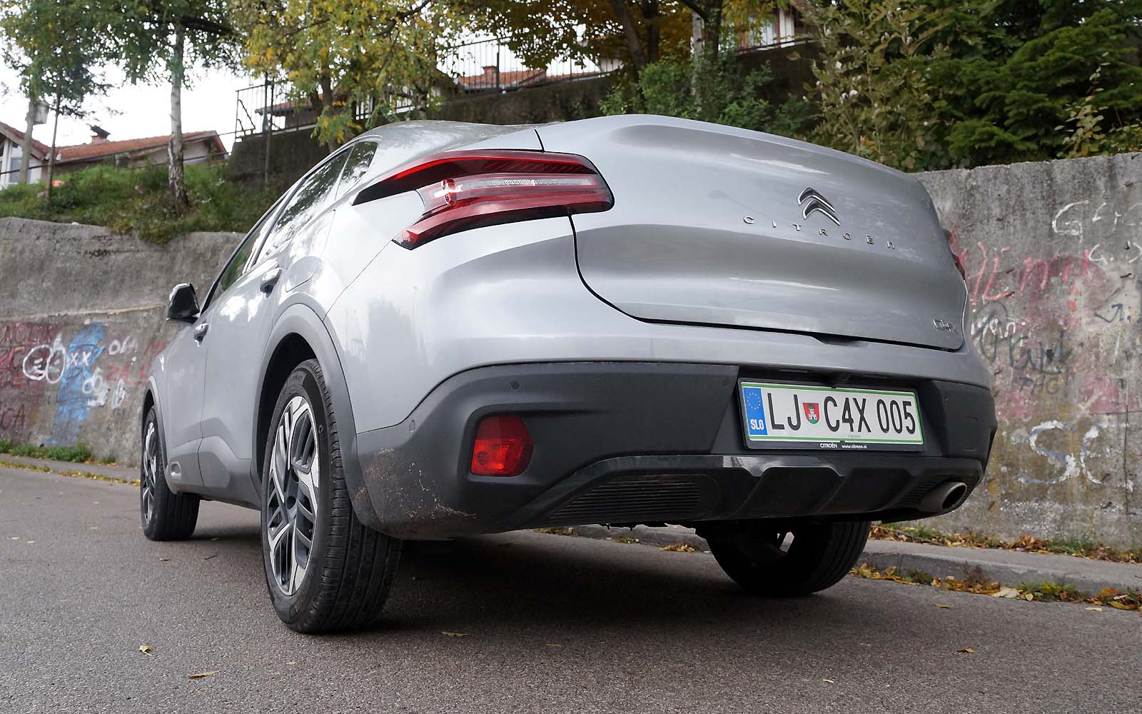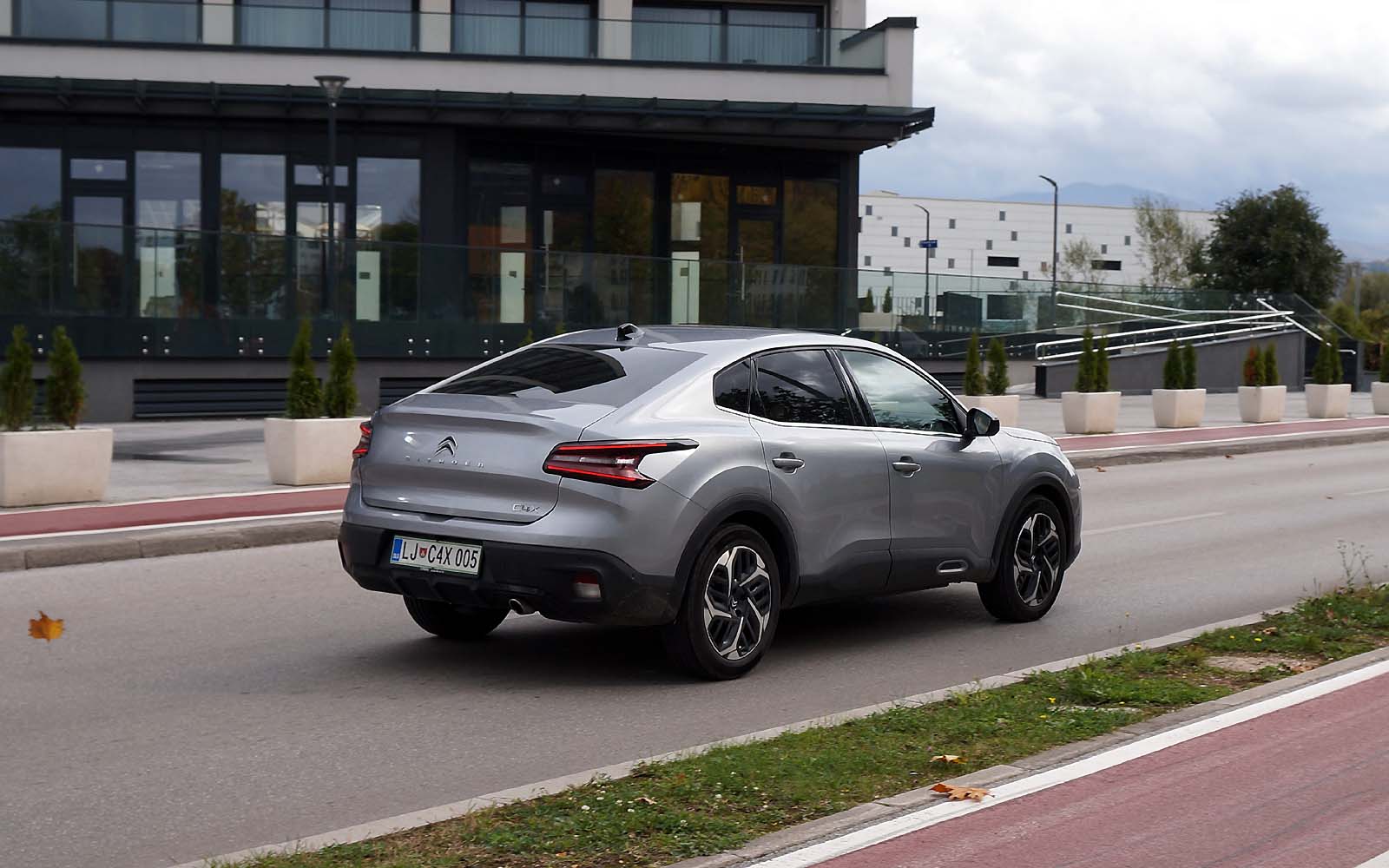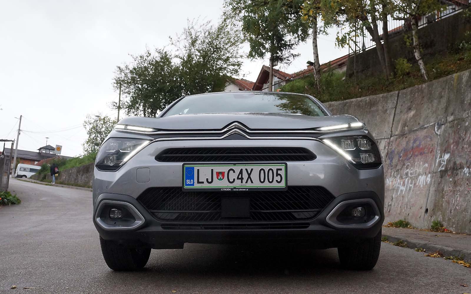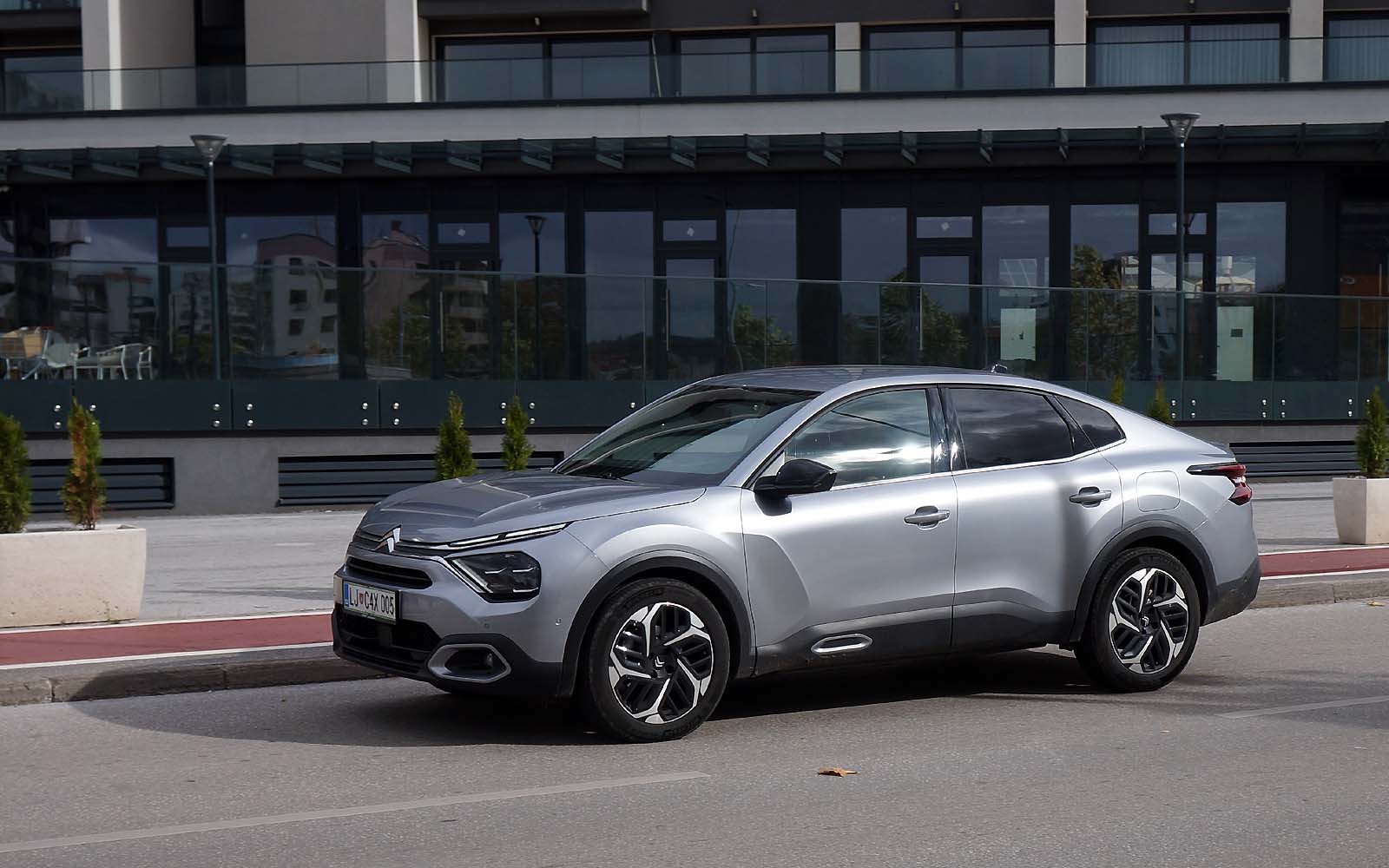 Drugačije rečeno, prednji dio Citroëna C4 X se gotovo i ne razlikuje od Citroëna C4, ali stražnji dio je drugačiji. Stražnje vejtrobransko staklo se blago spušta prema poklopcu prtljažnika, koji je blago podignut i ima funkciju spoilera. Takva silueta izgleda elegantno i atraktivno, te predstavlja svojevrsnu avangardu u C segmentu. Naime, dosta često takvi automobili izgledaju neskladno, pa stražnji dio izgleda kao “nakalemljen” na već od ranije poznati hatchback, što kod Citroëna C4 X nije slučaj, ni približno.
