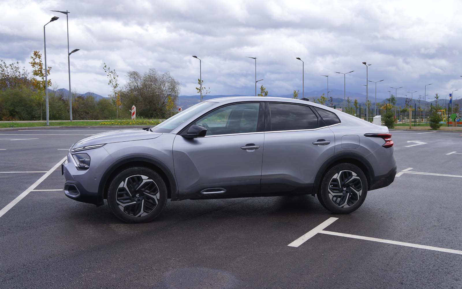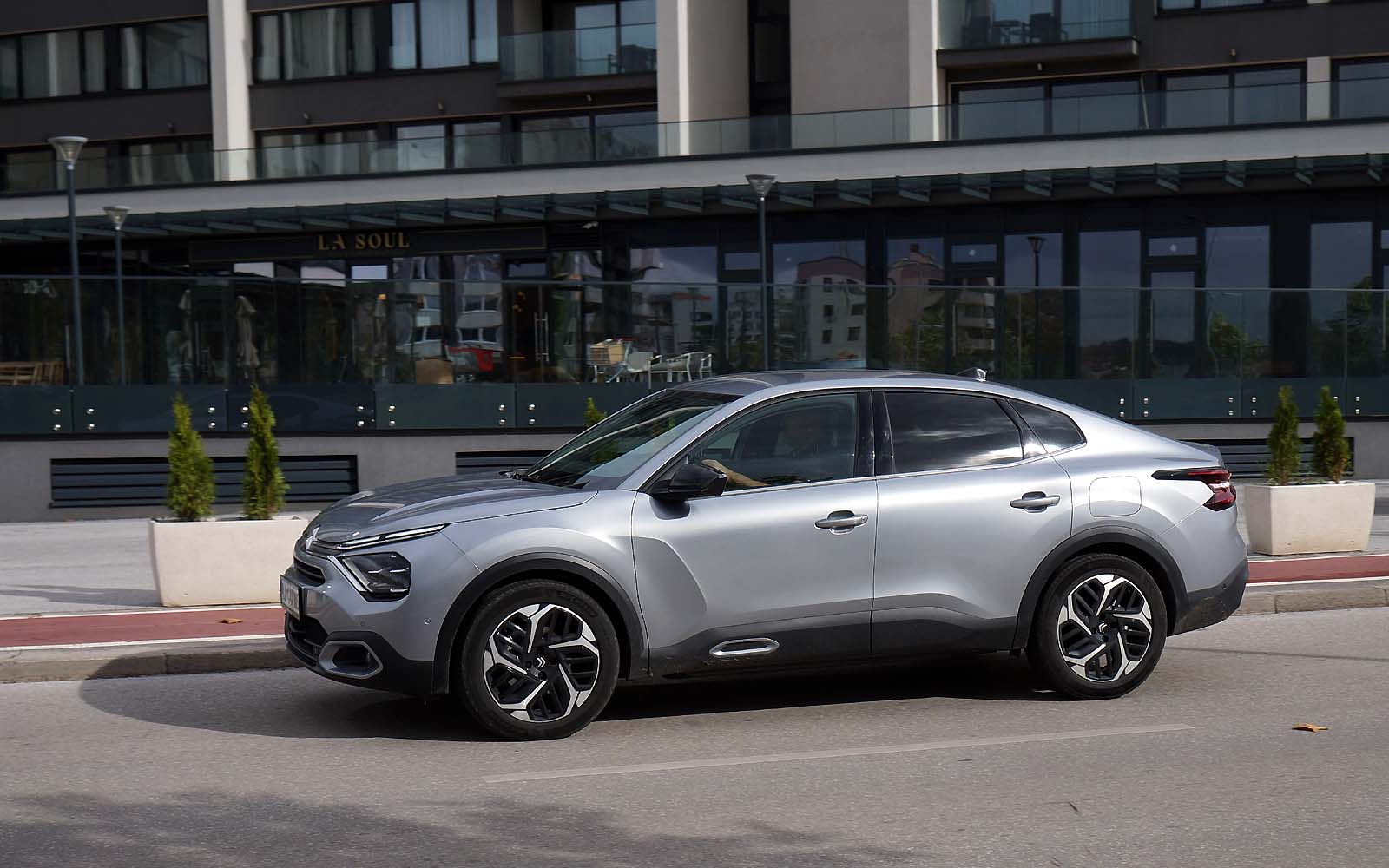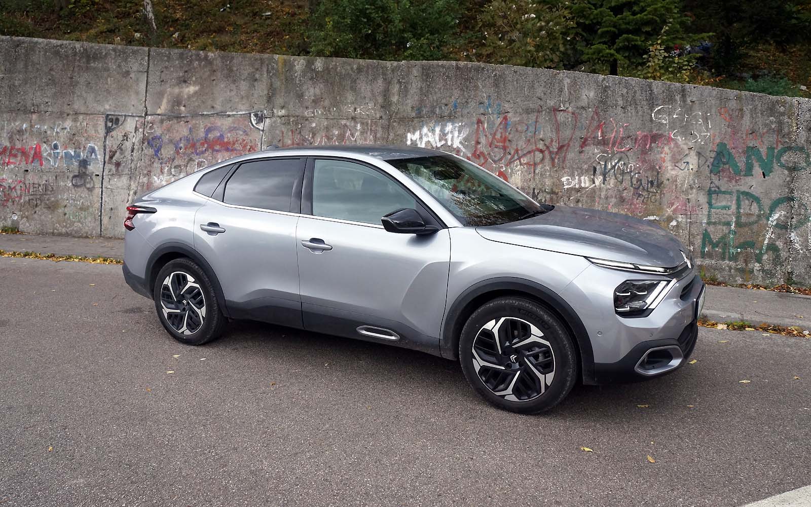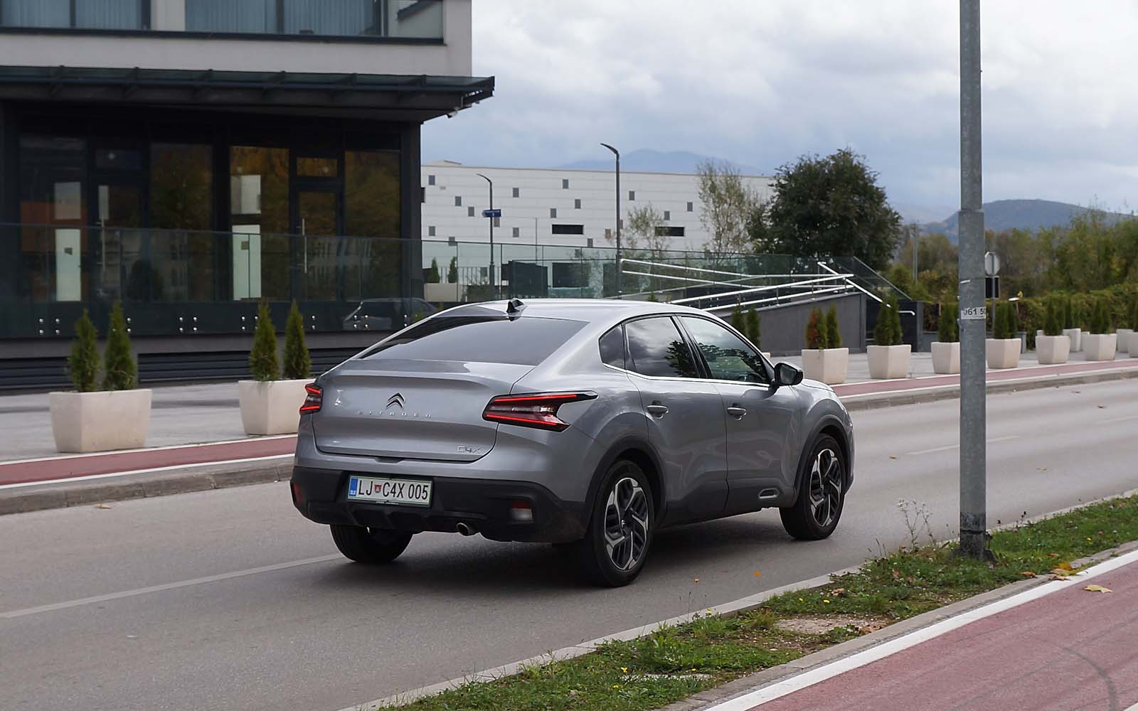 Drugačije rečeno, prednji dio Citroëna C4 X se gotovo i ne razlikuje od Citroëna C4, ali stražnji dio je drugačiji. Stražnje vejtrobransko staklo se blago spušta prema poklopcu prtljažnika, koji je blago podignut i ima funkciju spoilera. Takva silueta izgleda elegantno i atraktivno, te predstavlja svojevrsnu avangardu u C segmentu. Naime, dosta često takvi automobili izgledaju neskladno, pa stražnji dio izgleda kao “nakalemljen” na već od ranije poznati hatchback, što kod Citroëna C4 X nije slučaj, ni približno.